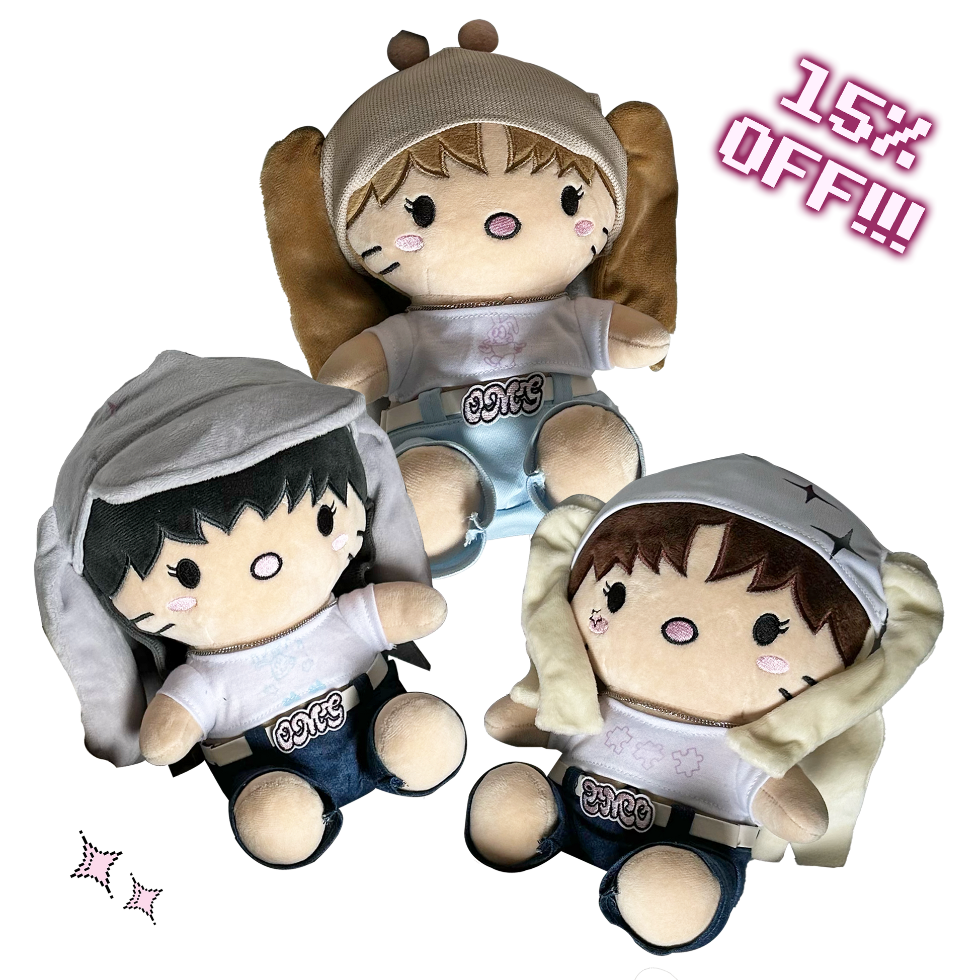 ✮ includes all three newjeans 20cm plushies: hanni, danielle and haerin!